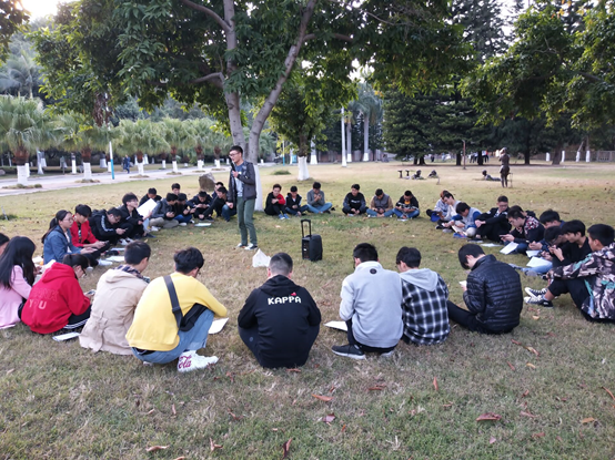 本报讯(周玉洁报道)为进一步增强同学们学习积极性,以自信从容的姿态迎接期末考试,数学与计算机学院2017级软件工程四班于2018年11月27日17:00在一教草坪开展了以“秉承学游”为主题的班会。此次班会由陶鹏同学主持。
