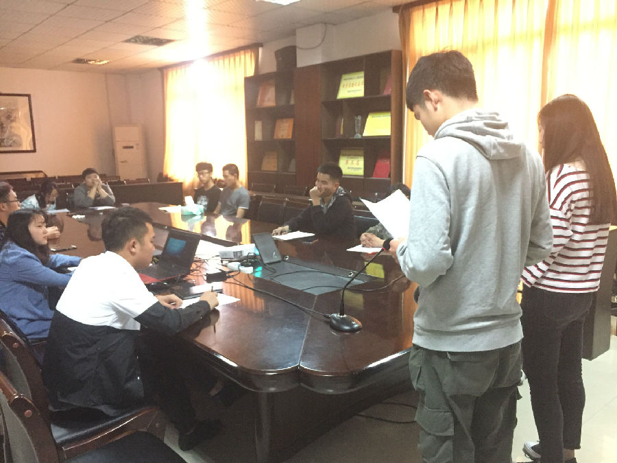 本次选拔赛由数计学院文艺部副部长张浩主持,首先进行了大赛的第一项“男女搭配,读演讲稿”,以此对选手们进行考核。选手们演讲完后,紧接着评委们对各位选手都发表了意见,提出他们的不足,希望他们加以改正,提高自身演讲素质。最后,评委们对各选手进行打分。本次选拔赛的最终结果不日将公布。