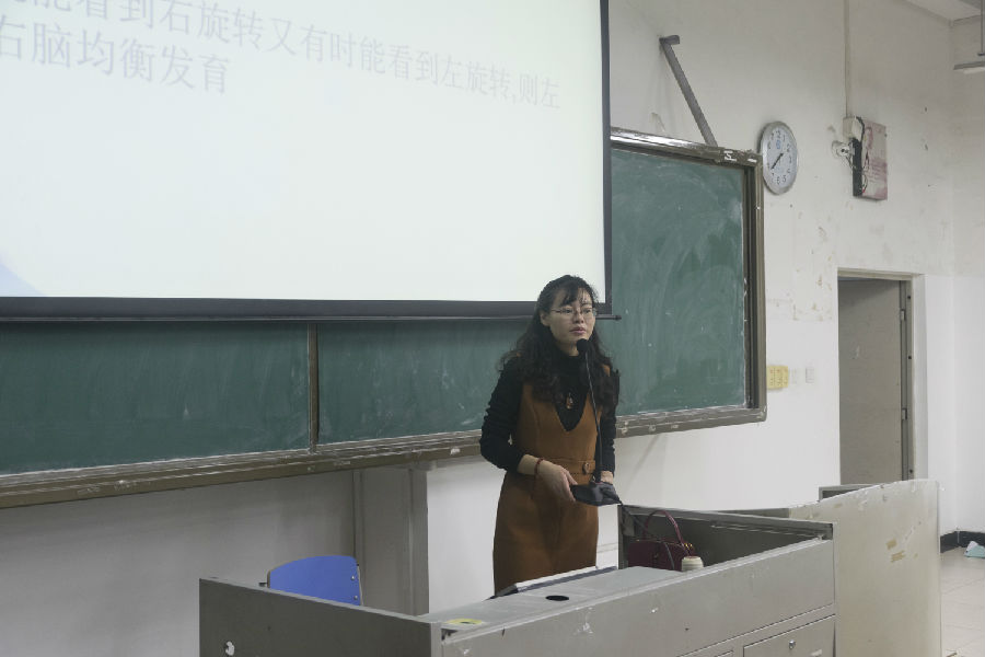 2017级年级助理曾诚介绍李仁莉的基本信息,接着邀请李老师上台做讲座。李老师利用视频和图片为同学们讲述了心理学的相关知识,帮助同学们认识自己。期间同学们也都积极听讲,反响热烈。