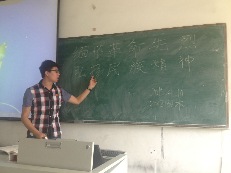活动上,班长曹宏首先讲解革命先烈的感人故事,表达了对革命先烈的缅怀激励了广大学生珍惜今天、把握明天,潜移默化地对学生进行爱国主义情感的培养。随后,播放了革命先烈事迹改编的电影影像资料,重温中华民族传统文化精神内涵,唤醒了同学们奋发图强的意识,使同学们认识到国家的繁荣富强要靠大家共同努力。最后,团支书本次团日活动做了总结此次团日活动取得圆满成功。