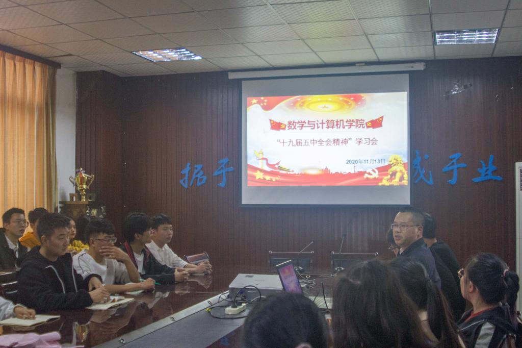 2020年11月13日下午3点,数计学院党委在励志楼会议室举行了十九届五中全会精神学习会。会议由数学与计算机学院党委副书记书记林宗兵主持,数学与计算机学院教师和学生共计66人参加。