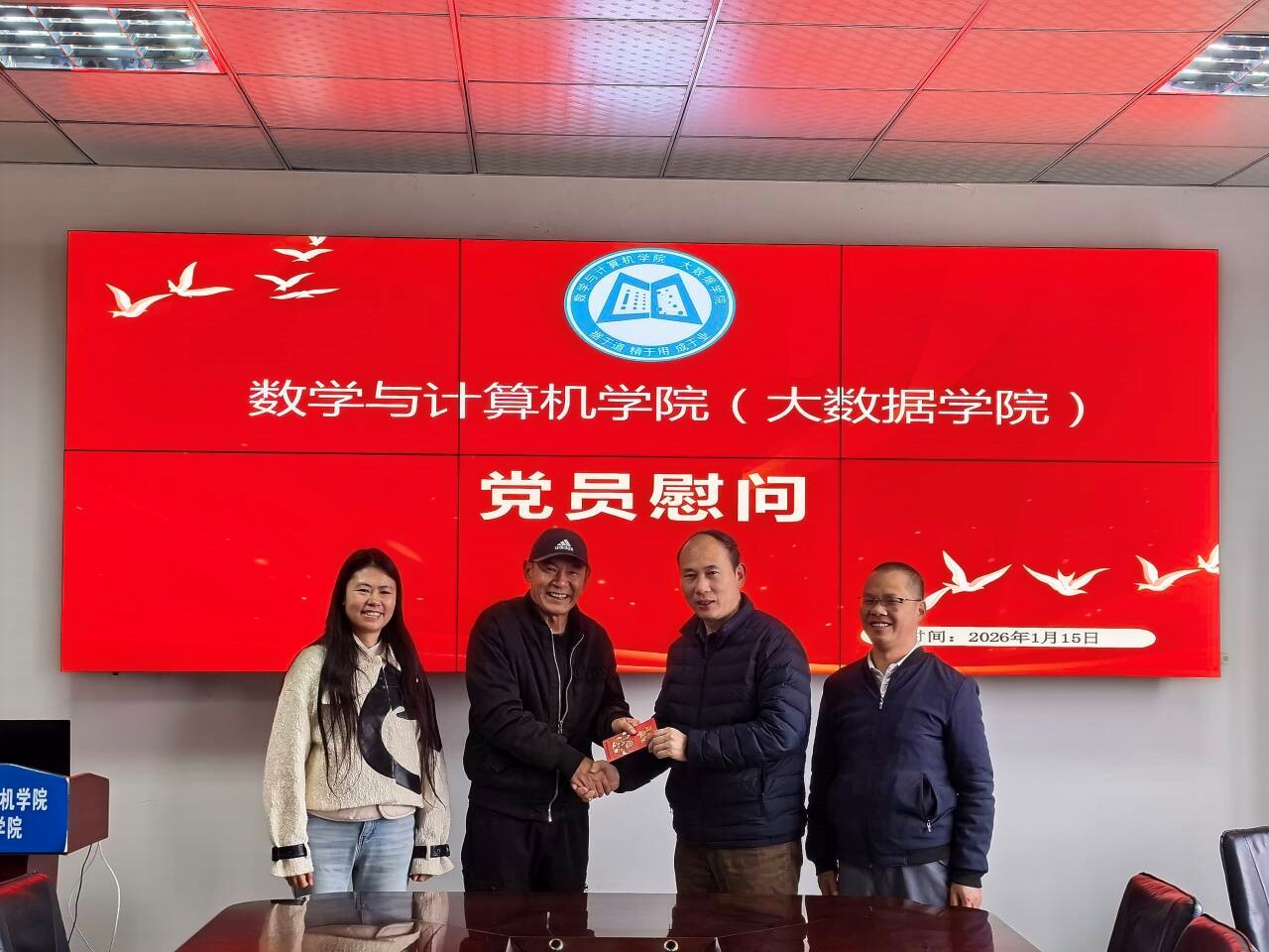 为深入学习贯彻党的二十届四中全会精神,全面落实上级关于走访慰问工作的重要部署,数计学院党委于1月15日开展了党员走访慰问活动。学院院长、党委副书记张靖带队,党委副书记吴婷婷、副院长林宗兵一同参与,先后看望慰问了银星老师及退休教师谭千蓉,向他们传递组织的深切关怀。