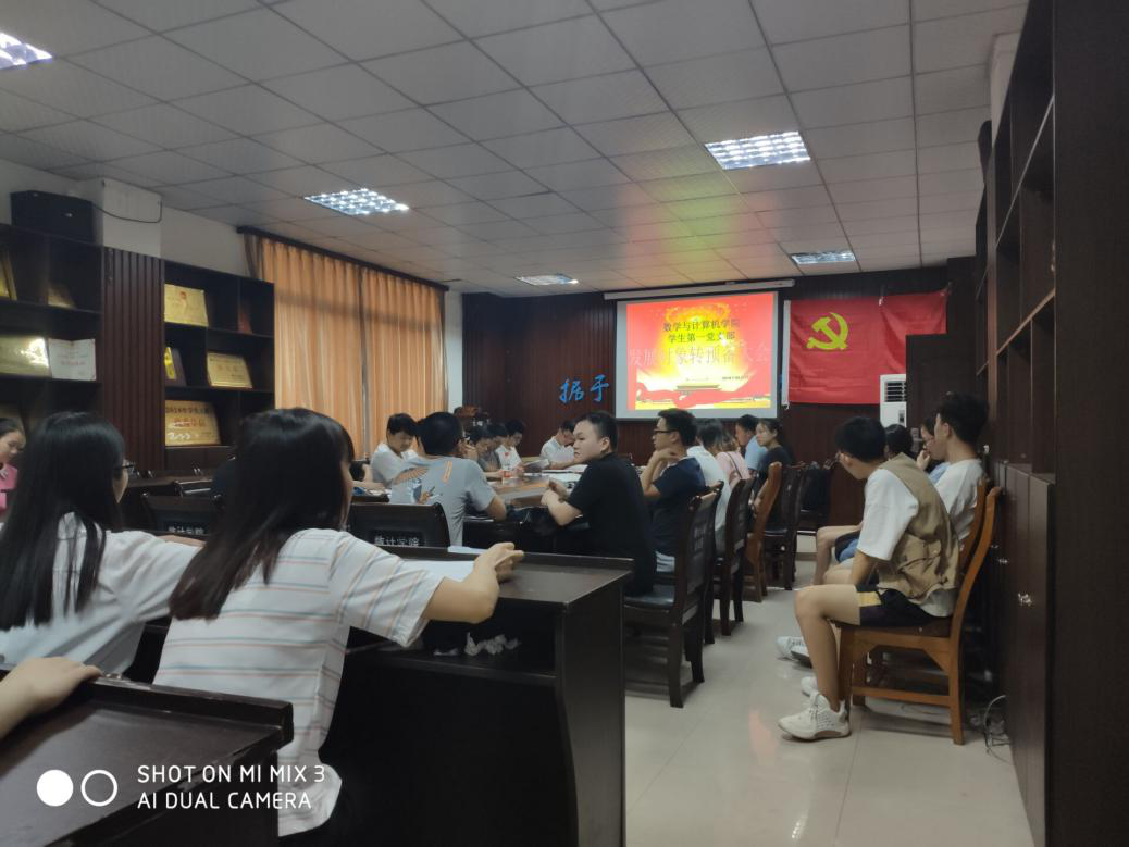 2019年05月17日晚7:30,数学与计算机学院学生第一党支部在励志楼四楼会议室召开支部大会,大会由支部书记刘亚尼主持,支委委员兰全祥、张丽和学生支部的所有党员出席会议。本次会议主要讨论票决李仙等7名发展对象的入党问题。大会上李仙、杨露洁、李琳、钱星岑、达荣春、杜冰清、朱贤鑫等7名发展对象通过票决吸收为中共预备党员,最后支部书记刘亚尼对新吸收的预备党员作出了严格的要求和期望。