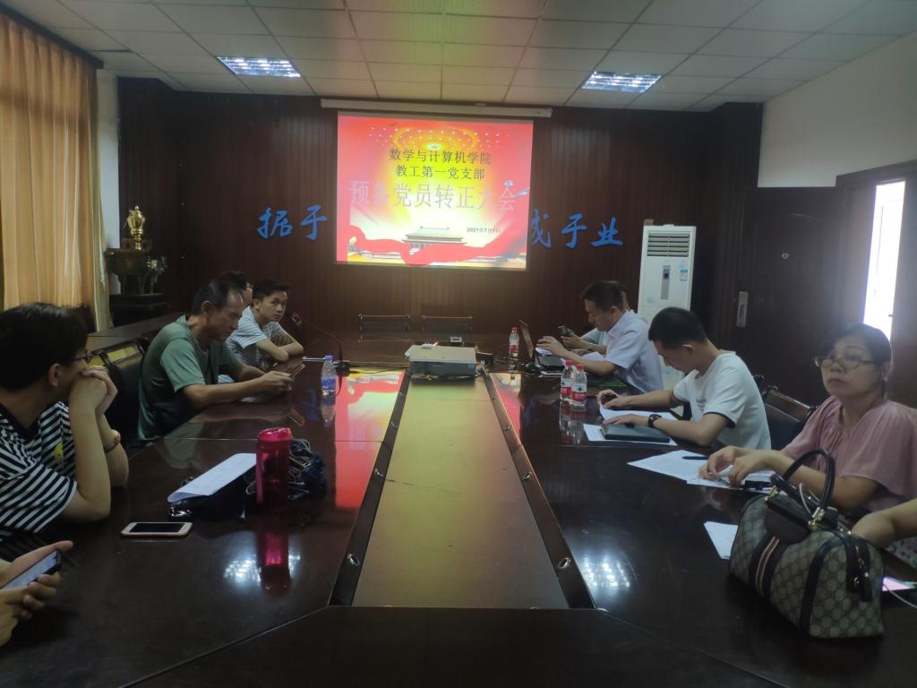 2021年7月1日下午,数计学院教工第一党支部在数计学院会议室召开预备党员转正大会。大会由教工第一党支部书记朱正国主持。