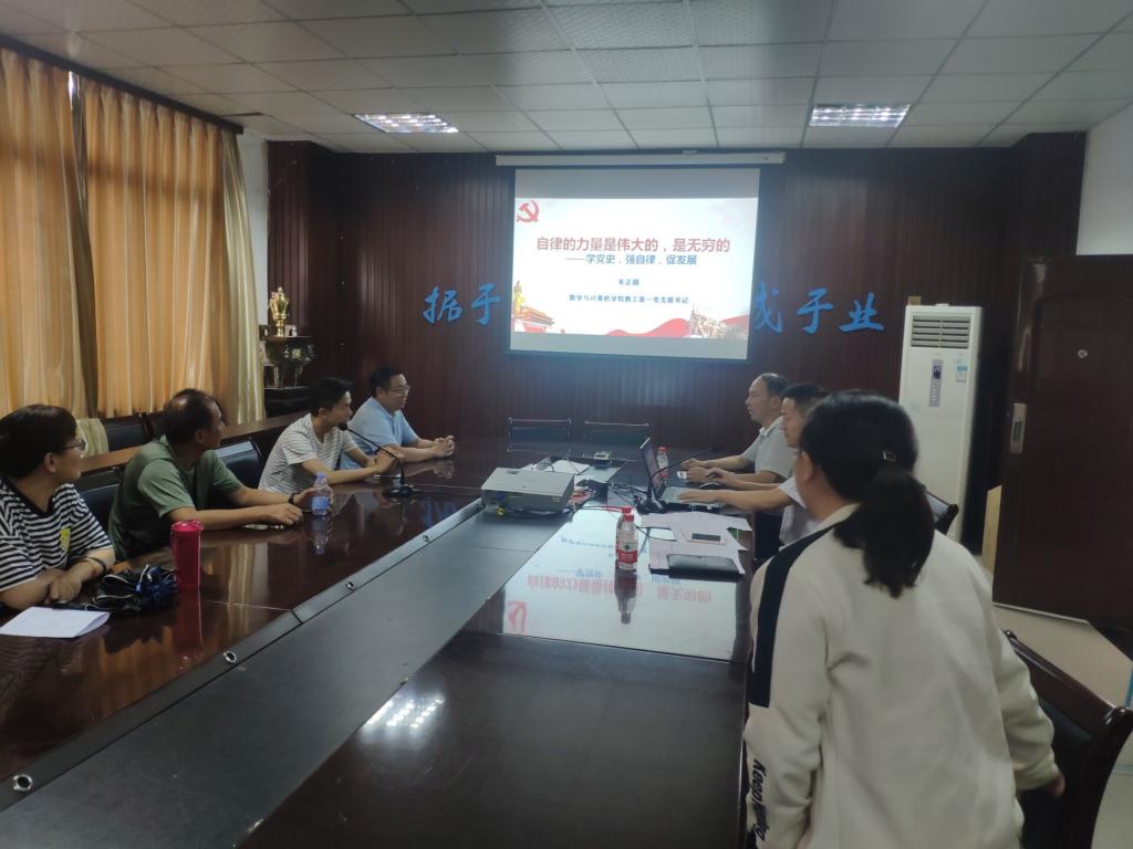2021年7月1日下午,数学与计算机学院学教工第一党支部开展“学党史,强自律”专题党课学习会。教工第一党支部全体党员教师参加党课学习。