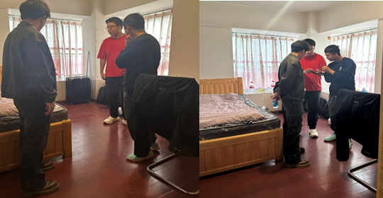 走访前,明确走访学生信息、住宿地址及排查重点。走访过程中严格对照工作要求,逐一核验学生住宿地址与备案地址的一致性,细致检查住宿点房屋结构、消防器材配备、用电用气安全、疏散通道等情况,对发现的细微安全隐患现场向学生及家长提出整改建议,留存走访资料。