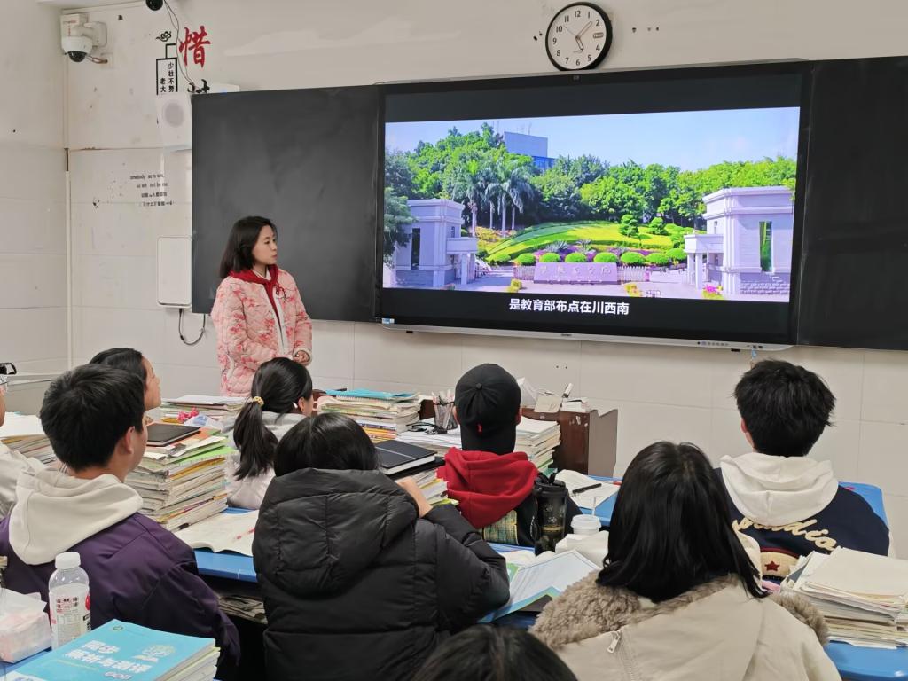 此次活动亮点凸显、精准高效,彰显校地协同育人成效。宣讲团在学校招生就业处指导下,打破“一刀切”宣讲模式,提前联动高中班主任,精准对接高一生涯规划、高二学业提升、高三备考择校的不同需求,定制差异化宣讲方案。团队系统梳理学校四十载办学历程,重点突出“钒钛+”“康养+”特色专业集群、国家级一流专业、省级“双一流”建设学科等核心优势,融合校园实景影像、学长成长蜕变故事与官方权威数据,让攀大办学特色与育人成果更具感染力、更接地气。