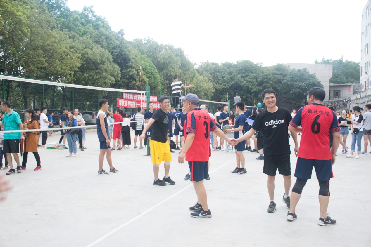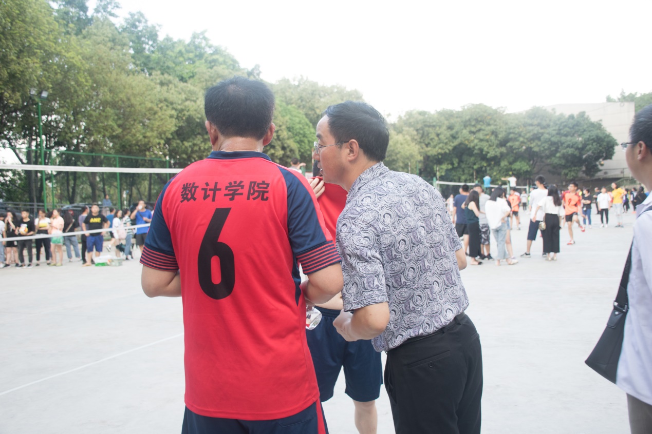 本报讯(黄铮报导)4月16日17:30,数学与计算机学院在我校本部排球场参加了2019年攀枝花学院教职工排球比赛,我院教工排球队与外国语学院教工排球队进行了一场精彩绝伦的冠亚军之战。数计学院院长张靖、党委书记张清学、党委副书记兼纪委书记林宗兵、院长助理罗学刚、学生科科长程江珂、分团委书记朱华,以及部分无课教师观看了本场比赛并为之加油助威和出谋划策。