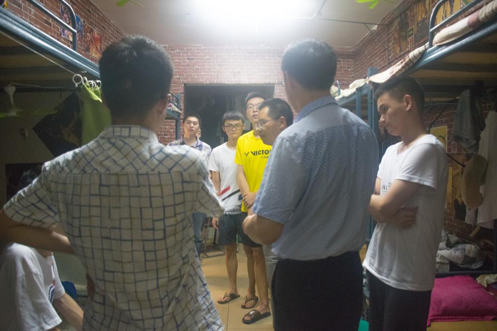 (本报讯 黄铮报导)6月18日22:00,数学与计算机学院党委书记张清学、副党委书记林宗兵和分团委书记朱华一行人深入2018级学生寝室,为正在准备期末考试的学生送去了深深的关怀。