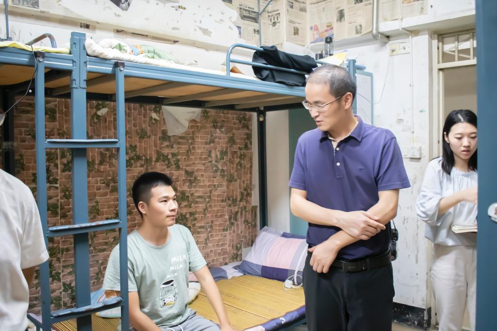 走访中,林宗兵副书记和罗学刚老师与同学们一起进行深入交谈,详细了解同学们的住宿和生活情况,也进一步了解新生的思想动态以及对自己专业的期许。2019级辅导员刘亚尼希望新生将学校当成自己家,室友间互相关爱,也要学会独立生活和自主学习。主席团成员对新生特别强调,要爱护寝室卫生和寝室公共物品,同时注意宿舍安全,出宿舍关好门窗,妥善保管自己的贵重物品。