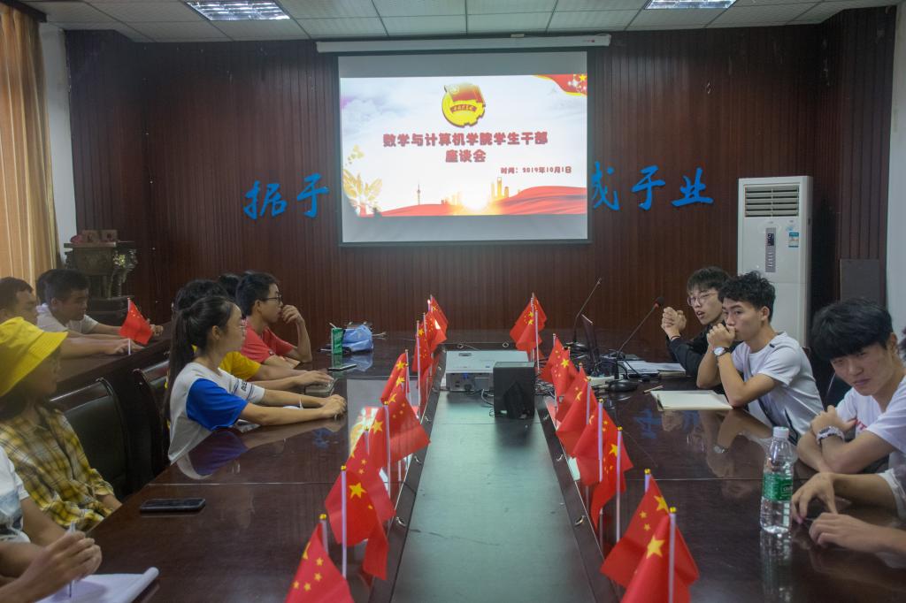 本报讯(罗艾 魏广报道)今天早上,数学与计算机学院在本部砺志楼四楼会议室召开学生干部座谈会。党委书记张清学,党委副书记林宗兵,团委学生会主席陈益锋、刘鑫以及各个年级学生干部参加此次座谈会。