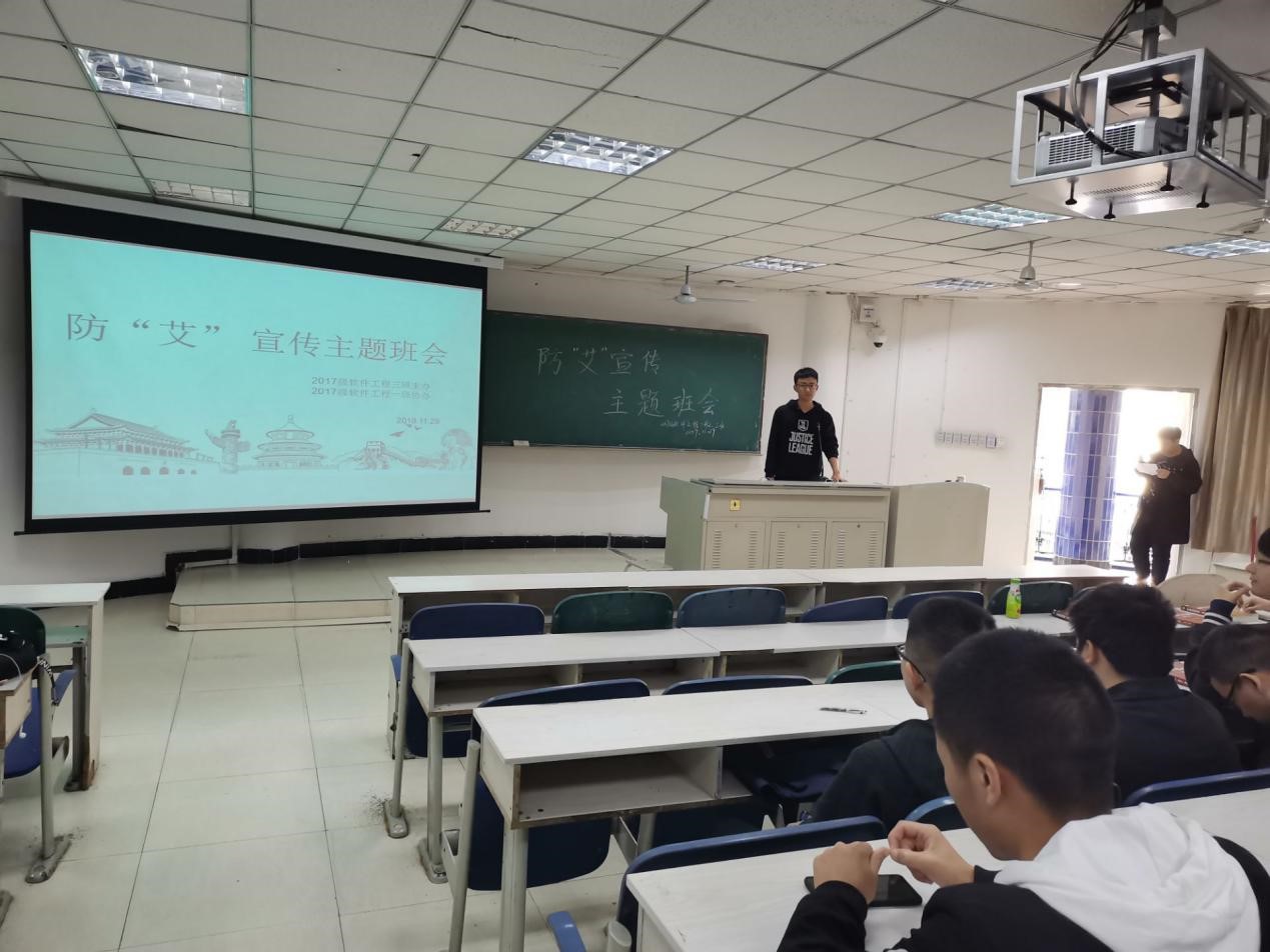 2019年11月29日10:00,数学与计算机学院2017级软件工程一、三班在二教214教室开展了以“禁毒防艾”为主题的团日活动。三班团支书王银担任负责人。
