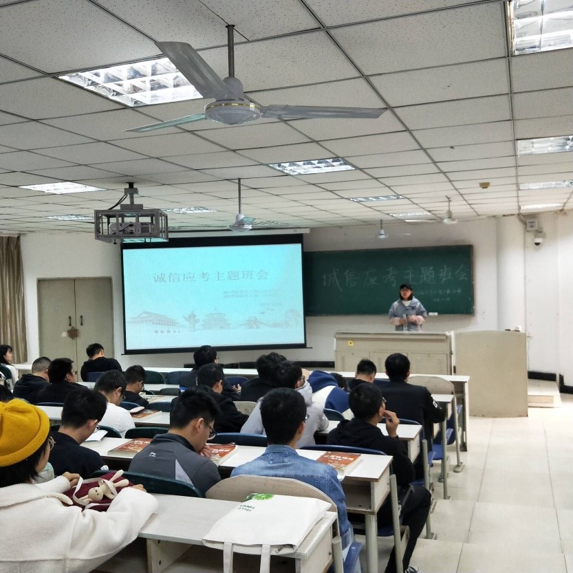 本报讯(钟琳敏报道)2019年11月29日10:30,2017级软件工程一班、三班在2-214教室开展了“诚信考试”班级活动。三班副班长钟琳敏担任主持人。