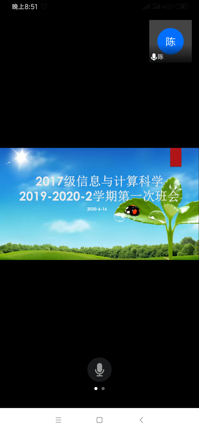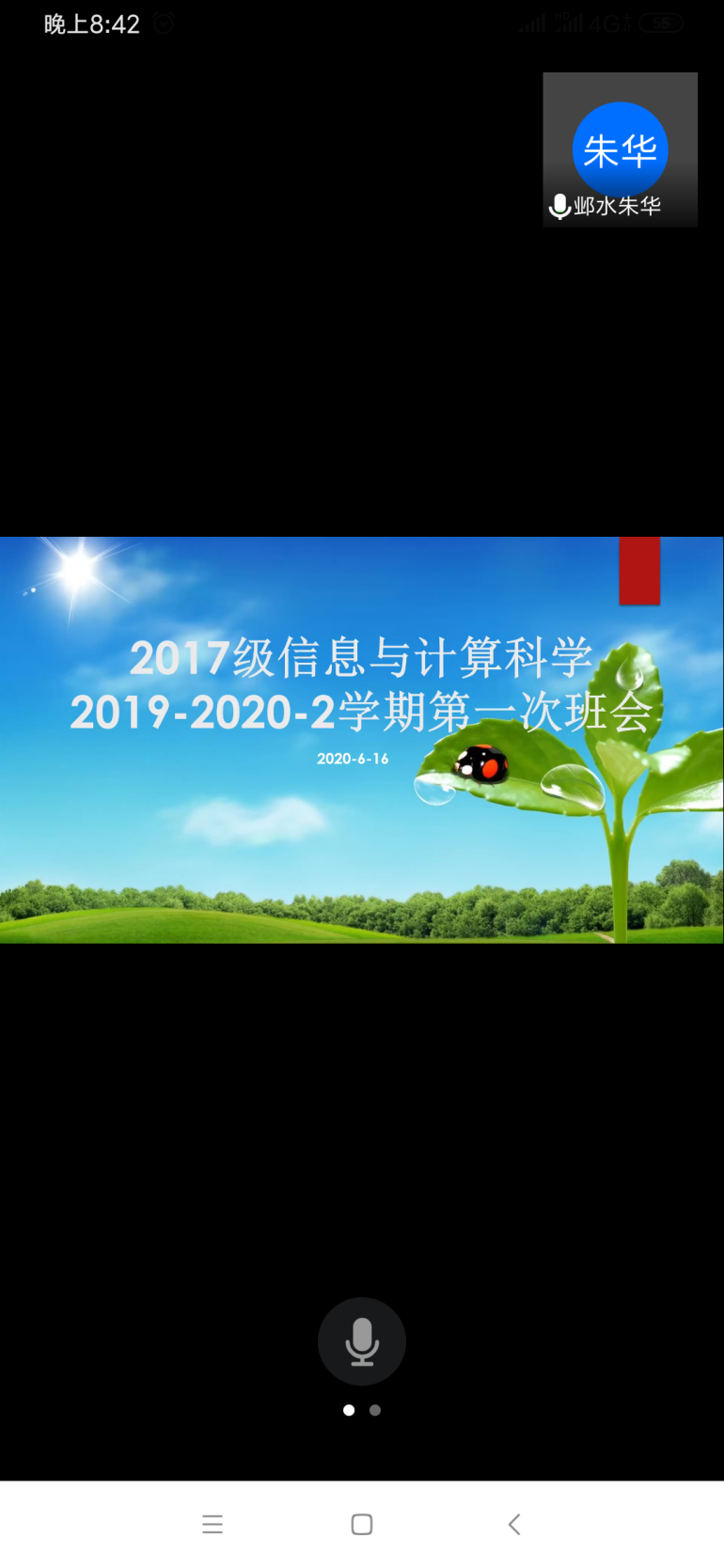 本报讯(陈浩 报道)6月16日下午20时整,2017级信息与计算科学班通过腾讯会议开展了2019-2020-2学期第二次班会,本次活动由班长陈浩作为活动主持人,辅导员朱华老师和2017级信息与计算科学全体同学参加。