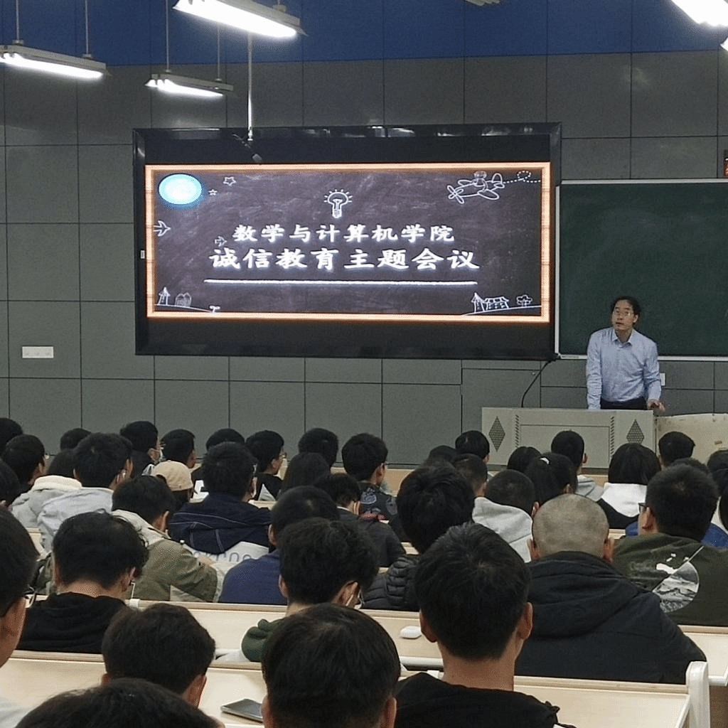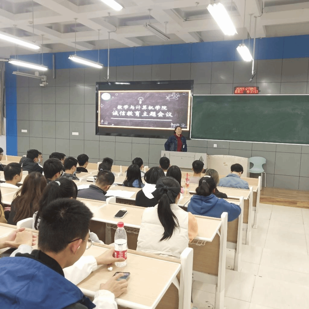12月9号晚上,我院在二教2-1召开了诚信教育主题会议。我院党委书记张清学、学生科科长兼分团委书记邓勇军、2020级辅导员刘颖及2020级全体同学参加了此次会议。张清学担任本次会议的主持。