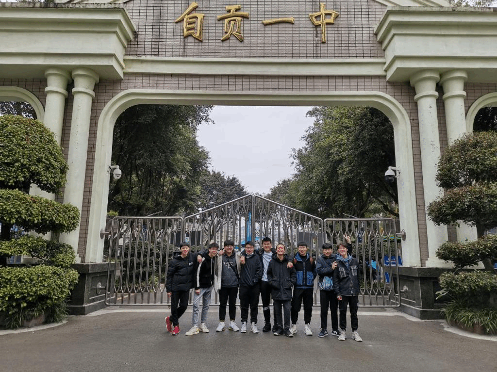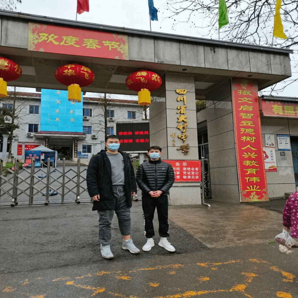| 周子斌和陈星宇在自贡一中给高三同学做招生宣传 |