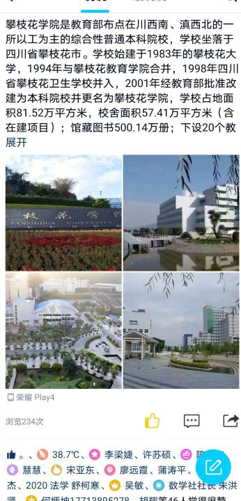 截止到2月28日,2020级共357名同学分别在QQ或是朋友圈中发布动态,积极宣传学校和学院,累计浏览人数25000余次,累计评论次数10000余次。电话答疑260余次。更好的宣传、介绍了攀枝花学院,取得了不错的效果。