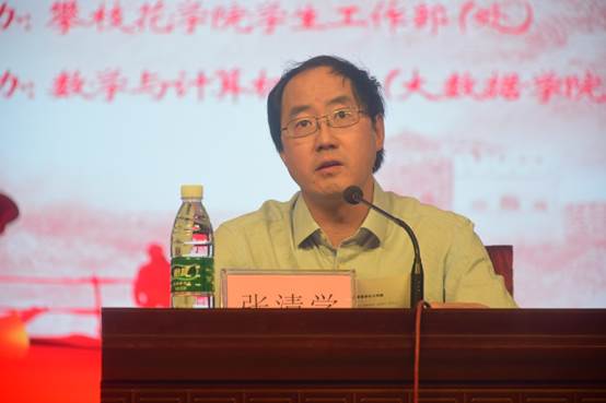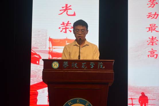在喜迎中国共产党百年华诞,全面打造“自律攀大人”校园文化品牌、全力推进学校“申硕、更名”发展新局之际,由攀枝花学院学生工作部(处)主办、数学与计算机学院承办的“喜迎建党100年,劳模工匠进校园”劳动教育专场讲座于2021年4月14日下午三点在我校学生会堂举行。参加此次讲座的有攀枝花技师学院校长助理赵仕伟,世界技能大赛冠军赵脯菠,攀枝花学院学生处处长周传兴、副处长谢萍、王颖,数计学院党委书记张清学、副书记林宗兵,以及各二级学院师生共计500余名学生参加了此次讲座,张清学担任主持人。