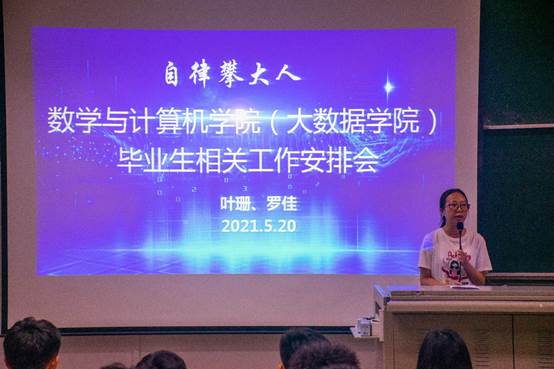 本报讯(伍自洋 报道)5月20日晚七点三十分,我院在一教1-3举行了毕业生相关工作安排会。我院17级辅导员罗佳和叶珊以及17级全体学员参加此次安排会。此次安排会由叶珊主持。