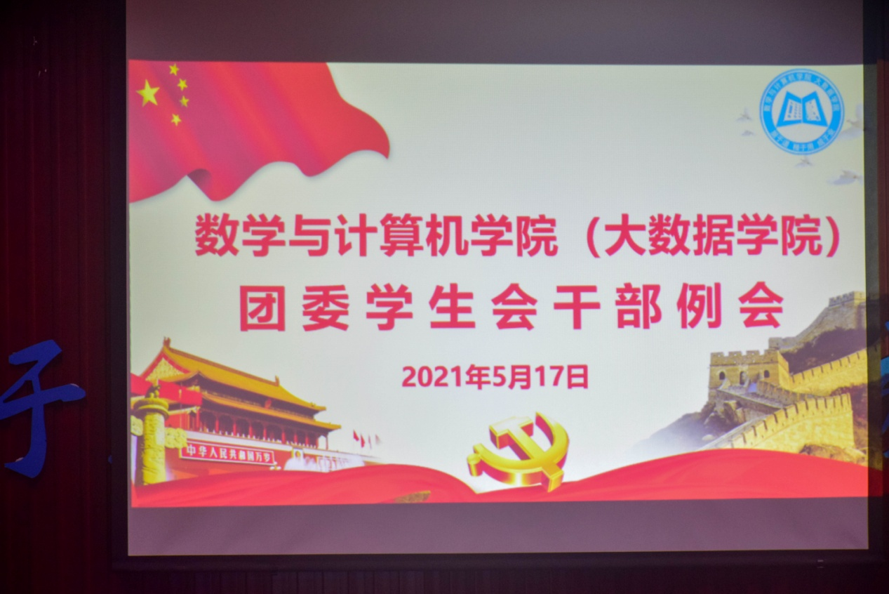 本报讯(王俊楠报道)5月17日中午,我院学生会召开“数学与计算机学院团委学生干部例会”,参加此次会议的人员有学生会主席李勇鹏,副主席刘安、殷灏云、张粤、王振宇,社管委主席张倩,以及各部门部长副部长。此次会议由李勇鹏主持。
