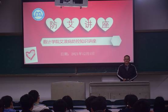 12月1日晚,数学与计算机学院(大数据学院)于2教2-4教室召开艾滋病防控知识讲座。参与讲座的人员有基础医学院老师魏小庆,2020级及2021级160余名同学参加了此次讲座。魏小庆担任本次会议的主讲人。