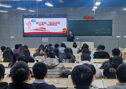 12月5日上午9:00数学与计算机学院(大数据学院)在二教2-1教室开展“宪法宣传周”宪法法制教育主题班会,学院党委书记张清学、学生科长邓勇军、辅导员万丹、龚萍、刘颖、叶珊、刘亚尼、田静等9人和各年级主要学生干部150人参加了此次主题教育活动。主题教育活动由邓勇军老师主持。