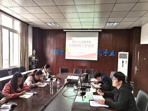 4月6日上午9:00,在数计学院4楼会议室召开了数计学院疫情防控工作会议,数计学院党委书记张清学、党委副书记姜承琳、学生科全体老师参加了此次会议,会议由姜承琳主持。