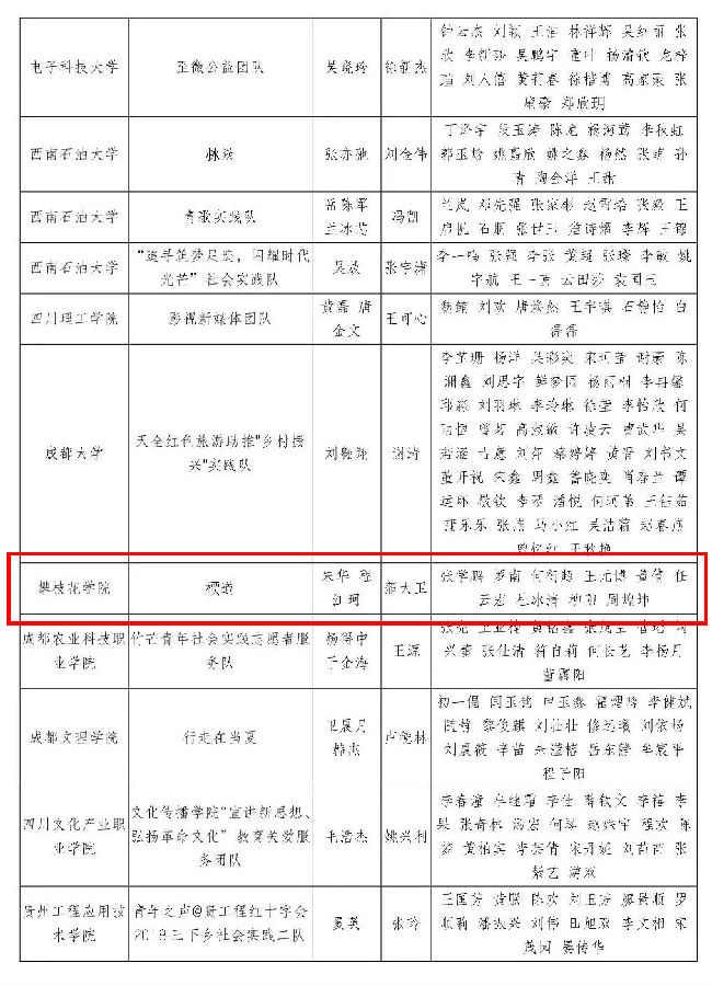 | 优秀通讯员名单(图片来源:团中央学校部) |