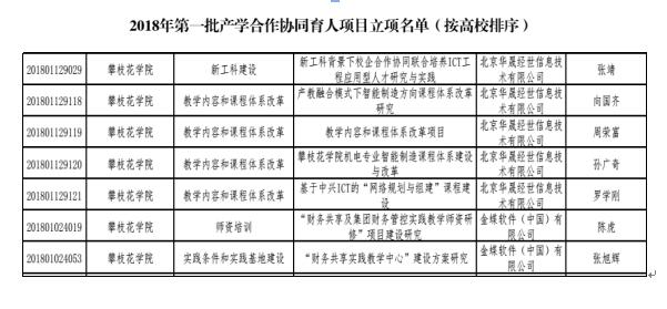 近日,从《教育部高等教育司关于公布有关企业支持的2018年第一批产学合作协同育人项目立项名单的函》(教高司函〔2018〕47号)中获悉,我校张靖院长(教授)和罗学刚教师(副教授,博士)分别负责的“新工科背景下校企合作联合培养ICT工程应用型人才研究与实践(新工科建设)”和“基于中兴ICT的'网络规划与组建'课程建设”2个项目成功入选。