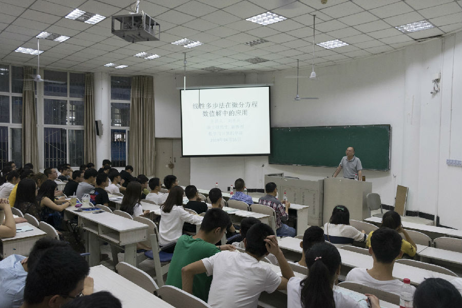 2018年4月17日晚上19:30—21:00在学校的二教111教室,数学与计算机学院数学副教授刘冬兵老师面对全校师生做了90分钟的学术报告,报告的题目为“线性多步法在微分方程数值解中的研究”。学术报告由高等数学教研室主任陈龙老师主持,全校共有120余名听取了报告。