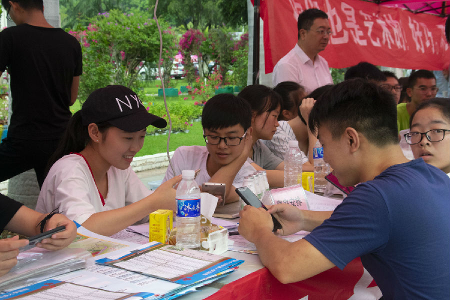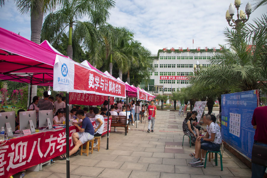 本报讯(周建国报导)今天是2018年9月4日,数学与计算机学院新生报到的第三天。虽然太阳炙热地烤着大地,但在恶劣的工作环境中,我院迎新志愿者仍坚持不懈,一丝不苟,指导并协助到校新生完成一系列报道工作。