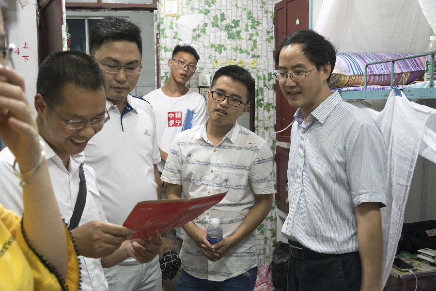 本报讯(巩晋禹报导)2018年9月2日晚,数学与计算机学院党委书记张清学、党委副书记林宗兵携同数计学院学生科科长程江珂、数计学院分团委书记朱华及各年级级辅导员一同视察2018级新生寝室准备情况并对到校新生表示慰问。