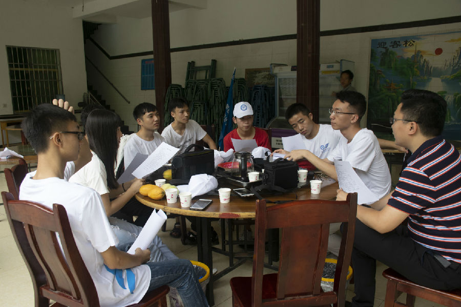 下午5点,团队顺利抵达本次实践活动的目的地——盐边县国盛乡,虽然队员们经过大半天的舟车劳顿,十分疲倦,但是大家都没有懈怠,略作调整后召开了 “后续工作开展”安排会议,会中程江珂老师首先指出第二天探寻工作的总体思路,“要围绕原生态,真实的展现出国胜茶的特色与品质,要能够切实的解决一些茶农所面临的销售宣传问题等”;接着队员们纷纷对第二天行程中可能出现的一些问题进行讨论,并准备解决方案。最后大家在路途的疲惫和对第二天工作的兴奋中进行了晚餐。
