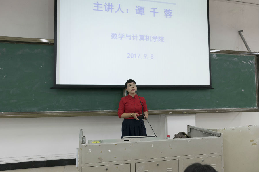 本报讯(向政宇报导),2017年9月8日下午15时数学与计算机学院党委书记谭千蓉教授为我校2017级网络工程、信息与计算科学,计算机科学与技术三个专业的新生在我校第二教学楼2-1阶梯教室进行了成长成才教育。