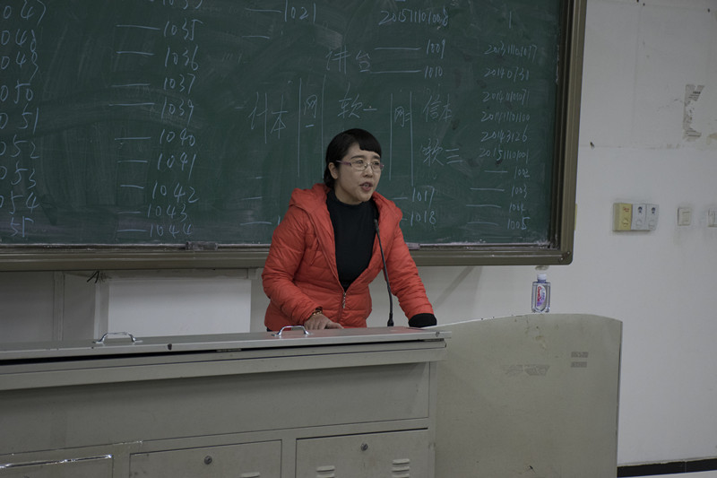 大会上,谭千蓉教授汇报了各班级英语四级考试与计算机等级考试的过级率,对取得优异成绩的班级提出表扬,并呼吁同学们建立良好的学习态度,定下自己的学习目标,多去图书馆学习,做好自己的学习规划以约束自己;寝室学习中,室长要以身作则,严以律己,给室友带好头,力争上游。谭千蓉教授强调,各科失败的成绩与不良的考试作风给自己带来的影响是伴随终生的,因此希望同学们锐意进取,对自己的人生负责。谭千蓉教授发言完毕,2016级辅导员张丽对同学们的课业问题提出了自己的看法:就同学们的专业而言,在遇到不会的程序时,如果是借鉴而来的,同学们应该弄懂每一条语句,避免存在知识漏洞。随后,张丽老师对同学们的专业方向与未来走向进行了指导。