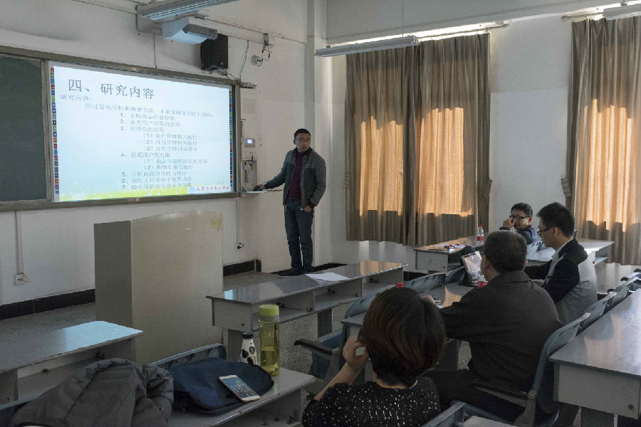 本报讯(周建国 刘丽丽报道)数计学院毕业设计开题答辩会于2017年12月13日下午14点在二教6楼举行。数计学院张靖院长到达现场并担任答辩老师。