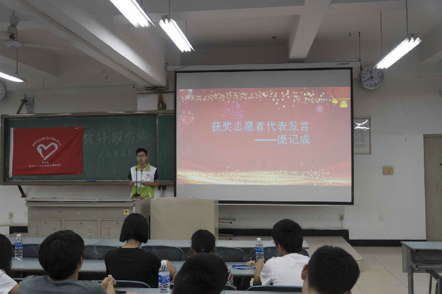 会议伊始,与会成员合唱青年自愿者之歌并宣誓。随后数计学院志愿者站长李林聪总结本年度工作、数计学院副站长周元强宣读表彰文件并进行颁奖。接下来由志愿者代表们发表演讲,最后攀枝花学院志愿者服务大队队长发表总结性讲话。