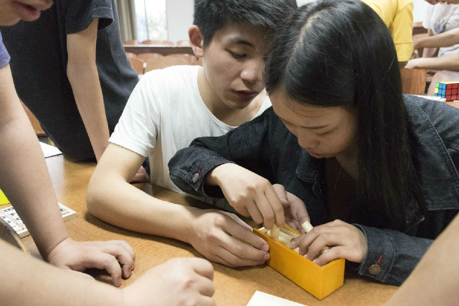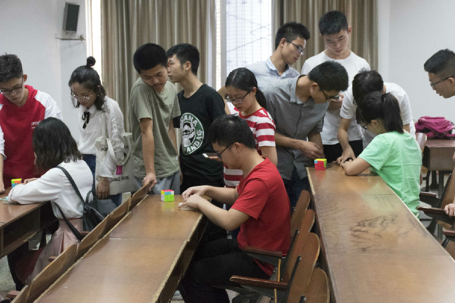 本次决赛于晚上19点正式开始,共有八个组入围此次决赛。首先进行“趣味魔方挑战”、“数字华容道”、“二十一根灵感棒”三个项目,每个项目每个组至少派一人参与,按照接力的形式,最先完成比赛的四个组进入决赛第二轮“题来题往”。然后进入决赛的四个组开始比拼,按照参赛队的顺序,为其他队选择数学社准备的趣味数学题,接到题的队伍必须在一分钟内回答,答对加分,答错或超时则选题方加分。最后,经过一场激烈的答题环节,决出了此次比赛的第一、二、三名,一等奖是“老板来瓶爽歪歪”队,二等奖是“tan360”队,三等奖是“齐次方程组”队。