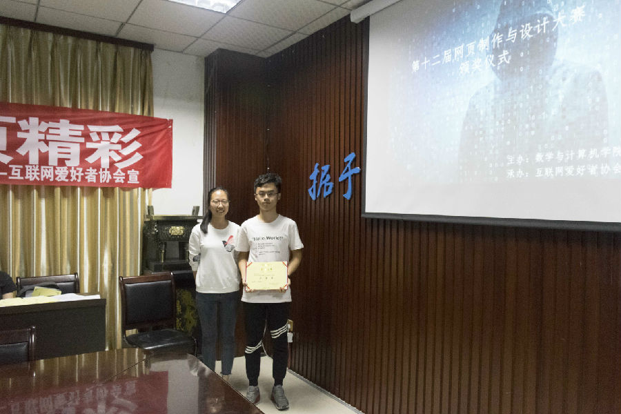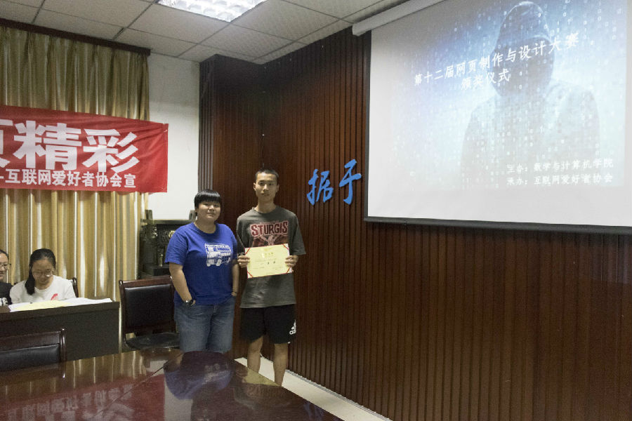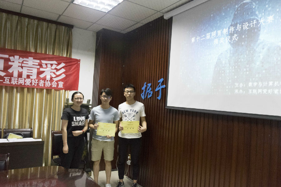 本报讯(周思懿 钟琳敏报道)数计学院互联网爱好者协会于4月12日晚在我校励志楼四楼会议室举办第十二届网页制作与设计大赛决赛暨颁奖仪式。莅临本次比赛的评委老师及嘉宾有:数计学院分团委书记刘亚尼,互联网爱好者协会指导老师兰全祥,数计学院办公室叶珊老师,数计学院专业实践教学中心的罗佳老师。学生主席冯政鑫、吕宏宇、于宸镔、刘子爵也出席了此次活动。