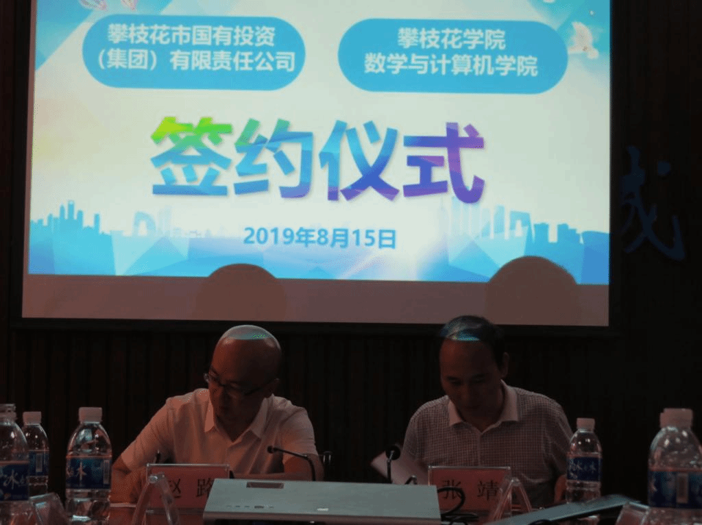 2019年8月15日下午15点,数计学院与攀枝花市国投集团在数数计学院会议室召开了交流座谈会和合作协议签字仪式。出席会议有攀枝花市国投集团董事长赵路、攀枝花市国投集团运营管理部副部长陈宏涛、长果康养公司总经理唐恩尧、浪潮攀枝花公司市场总监史渊木、数学与计算机学院院长张靖、数学与计算机学院党委书记张清学、数学与计算机学院院长助理罗学刚、数学与计算机学院实验中心主任刘彬。