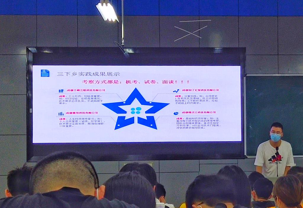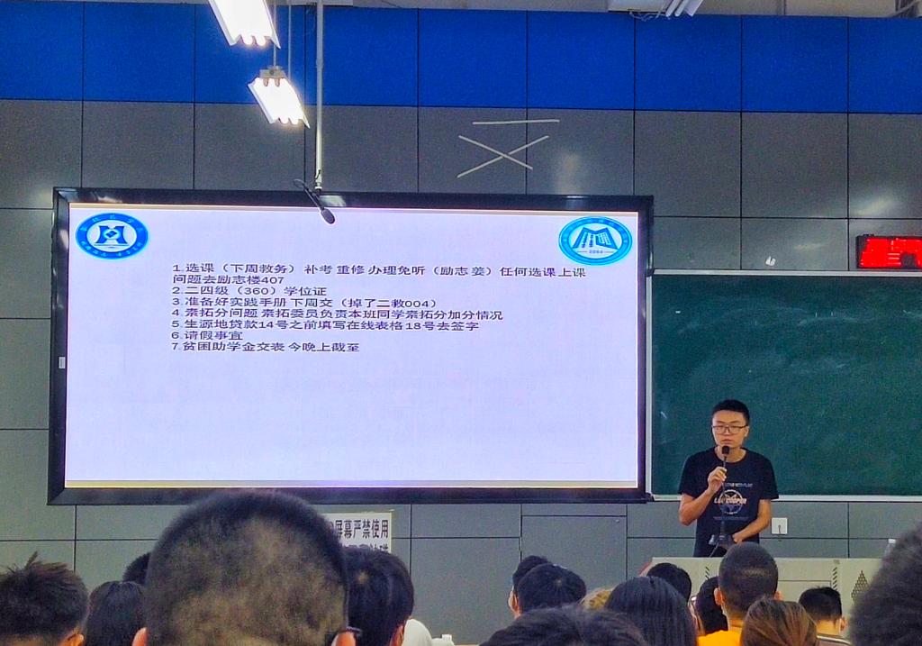 会议伊始,年级助理高仁键给同学们讲解了选课、补考、重修以及办理免听的相关事项。之后他强调,计算机二级和英语四级没过的同学要抓紧时间,时间已经很紧迫了,还有这将会影响到学位证的发放。接下来年级助理李炎林给大家分享了他暑假的一些社会实践经历,他说现在成都的一些企业考察的方式都是:机考、试卷、面谈,而且每个企业的用人要求各有不同,但大部分看重的都是项目经验、扎实的基础。他还提到,作为大三的我们,更应该努力夯实基础,不要局限于上课老师讲的知识,多去b站以及其他教学网站学习。最后,田静讲解了奖助学金的一些问题,同时还提到了接下来会有企业来学院进行宣讲,她希望同学们能够努力学习,为未来作好规划,毕业过后能拿到一份不错的工作。
