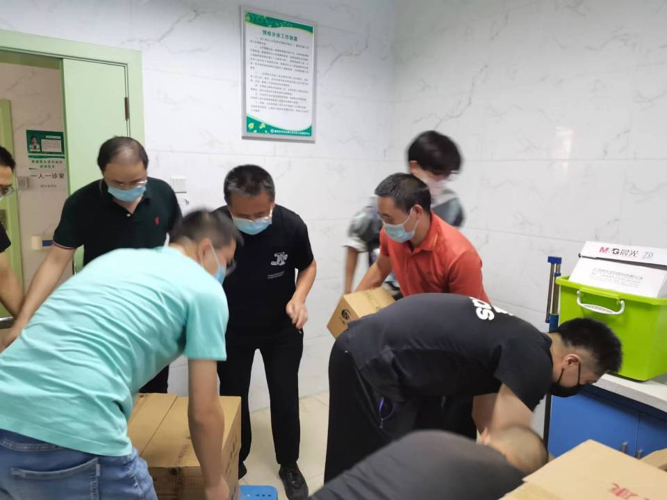 9月5日下午,市卫健局工作人员在太古广场区域搬运大量防疫物资。因人手不足导致搬运工作进展缓慢。学院党委迅速响应号召,由院长张靖、党委书记王明辉、副院长罗学刚、廖永志及罗淼等教师第一时间组建志愿服务队赶赴现场。迅速投入搬运工作,他们干劲十足,挥汗如雨,完全不顾自己的疲累,井然有序的卸车、搬运、摆放,用行动为抗疫一线送去温暖和力量。